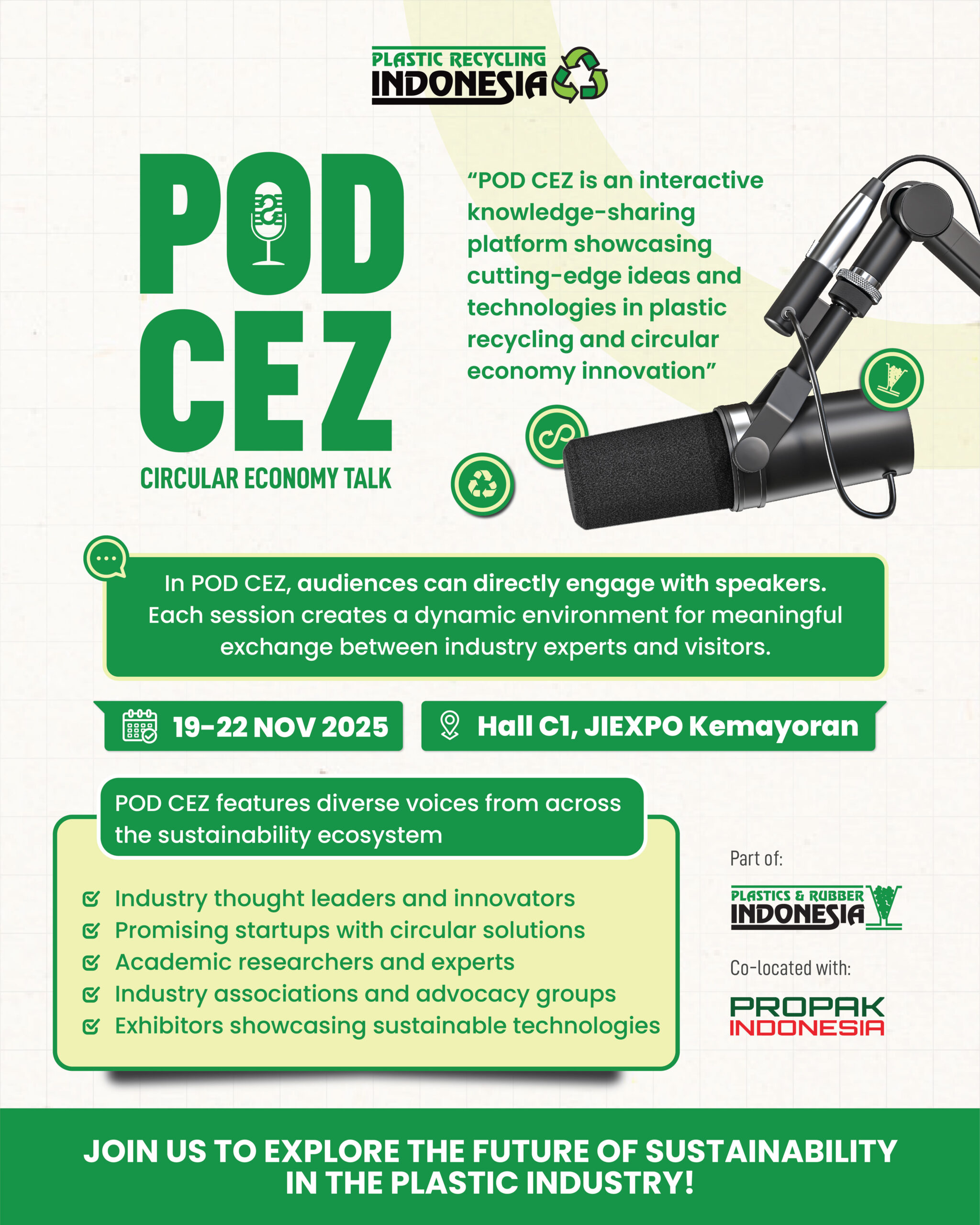 Elevate your industry experience at Plastics & Rubber Indonesia through our exciting programs. This powerhouse event delivers a dynamic platform designed to spark meaningful collaboration! Join us for informative sessions where you can learn about current industry trends and developments from experienced professionals!